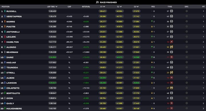 Aun así, que Colapinto haya finalizado otra vez por encima de Gasly es un triunfo personal. De hecho, en la anterior competencia, en el GP Azerbaiyán, lo chocó y le arruinó esa carrera, dejándolo en el puesto 19°. Ahora, por lo pronto, rindió mejor que él y le sacó cierta ventaja, en un Gran Premio de F-1 que George Russell, con Mercedes, ganó de punta a punta.
