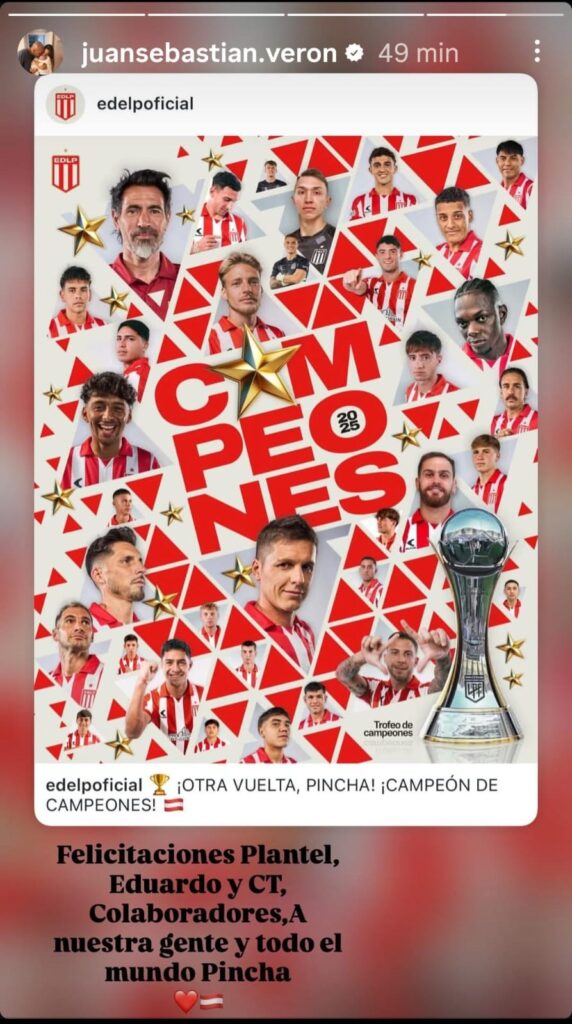 “Felicitaciones plantel, Eduardo y CT, Colaboradores, a nuestra gente y todo el mundo Pincha”, posteó el presidente a primera hora, en un claro gesto de acercamiento a un deté que ayer dijo en pleno festejo que “el año que viene buscaremos ser mejores” y que su continuidad “dependía de Marcos(Angeleri)”.
