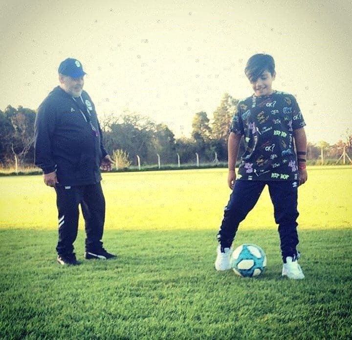 El hijo de Gianinna y Sergio Agüero y ahijado de Lionel Messi, sorprendió a su abuelo Diego Maradona, ya que se hizo presente en el predio de Abasto para alegría del DT Mens Sana.
