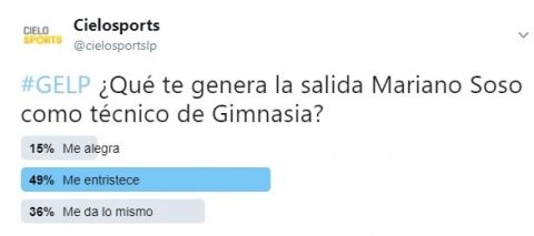 La salida de Mariano Soso como técnico de Gimnasia mostró una vez más las divisiones que había en los hinchas, desde que llegó al club. Las encuentas de CIELOSPORTS.COM muestran la realidad de lo que fue su estadía.