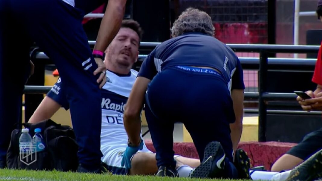 El futbolista pisó mal, al caer con el pie izquierdo de costado, y rápidamente se tomó su rodilla izquierda, en lo que significaba un cierre ante un ataque del Sabalero. Con muestras de dolor, se fue reemplazado por Germán Guiffrey.
