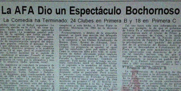 En la Asamblea del 14 de abril de 1964, a doce días de la fecha de inicio del nuevo torneo, la AFA decidió anular los descensos.