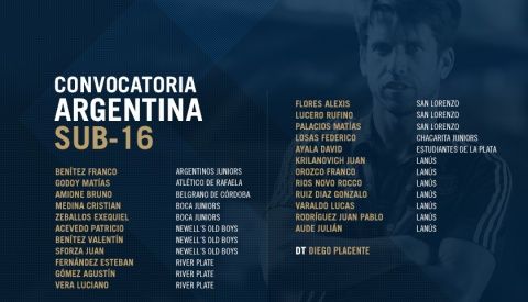 El DT junto a su cuerpo técnico entregó la lista de convocados para participar en el torneo internacional eligiendo además otros tres de recambio ante alguna eventualidad: Agustín Gómez, Juan Pablo Rodríguez y Julián Aude.