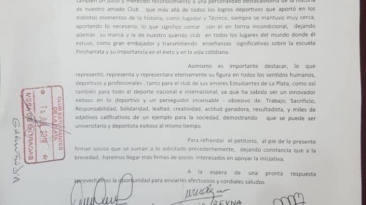 Mediante la plataforma www.change.org, se realizó una petición donde aquellos que apoyen la iniciativa pueden sumar su voto. La idea es que la nombrar a la Platea 115 “Carlos Salvador Bilardo”. Hoy su nombre es “Alfredo Lartigue”, quien redactó el acta fundacional de puño y letra.
