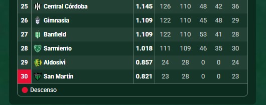 Además Sarmiento, otro de los que está abajo en esa tabla en particular (11 puntos abajo del Albiazul) también dio una muestra de carácter al derrotar a River en el Monumental y pasar al Tripero en lo que respecta a la cosecha anual. Los de Facundo Sava suman 30 unidades, una más que los de Orfila, y con 45 minutos restantes del partido suspendido ante Central en Junín.