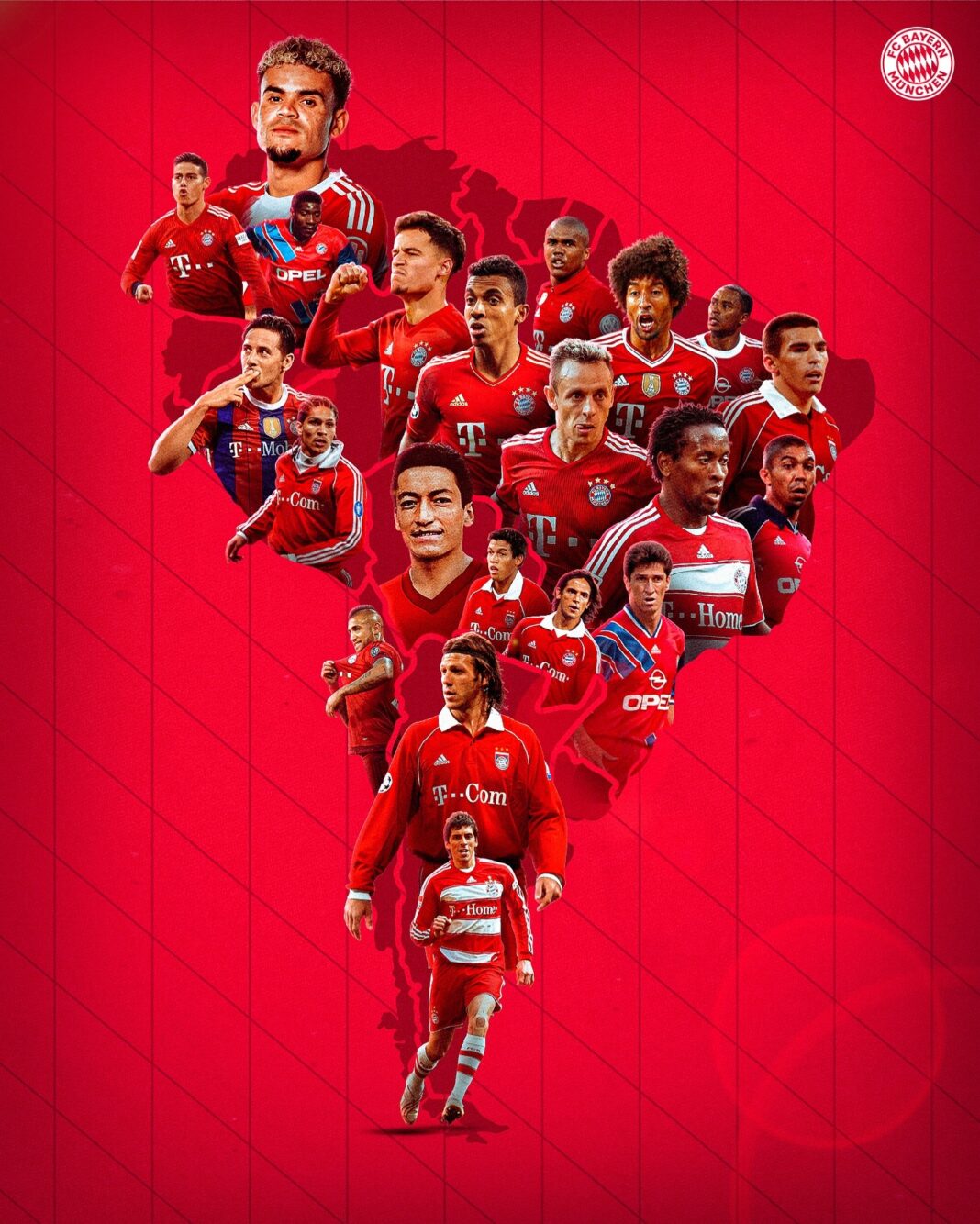 Luis Díaz, James Rodríguez y Adolfo Valencia, de Colombia; Coutinho, Luiz Gustavo, Douglas Costa, Rafinha, Dante, Lucio, Zé Roberto, Élber, Jorginho y Paulo Sergio, de Brasil; Claudio Pizarro y Paolo Guerrero, de Perú; Ramiro Blacut, de Bolivia; Julio Dos Santos y Roque Santa Cruz, de Paraguay; Arturo Vidal, de Chile; y Martín Demichelis y José Sosa, de Argentina.
