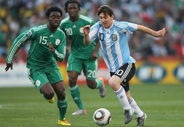 El tercer antecedente mundialista tuvo lugar el 12 de junio de 2010 en el Ellis Park de Johanessburgo, en donde el seleccionado nacional sufrió pero pudo arrancar con el pie derecho, venciendo a Nigeria por un ajustado 1 a 0 con gol de Gabriel Heinze.