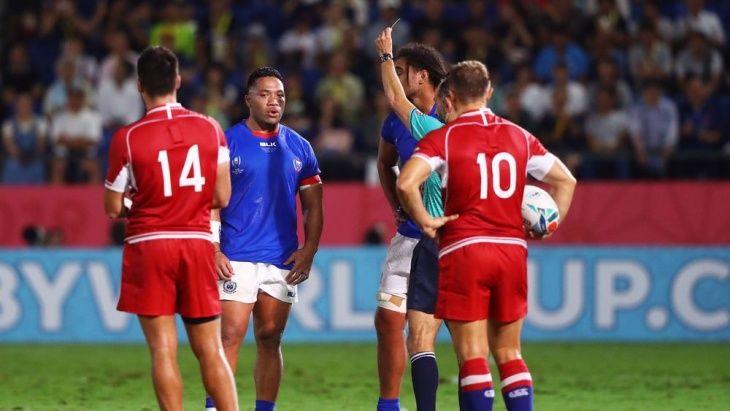 Cabe destacar que Samoa recibió dos tarjetas amarillas por tackles altos, en consecuencia jugó durante parte de esos cuarenta minutos con dos jugadores menos. Sin embargo Rusia no marcó gran diferencia durante ese tiempo.