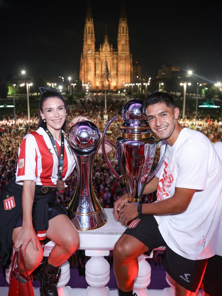 El defensor está en Brasil con su pareja Sasha Gigliani, quien también es futbolista, jugó en Estudiantes y es fanática del Pincha. Y ambos, además de mostrarse durante sus vacaciones, también exhiben ese amor por el club.