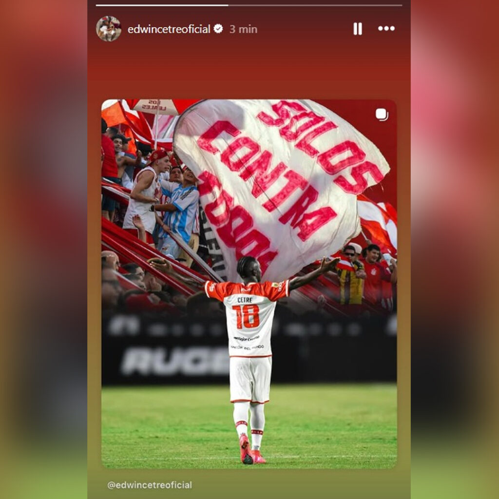 Lo que destaca del collage que compartió el colombiano tiene que ver con el mensaje que se lee bien claro en la bandera que se observa en primer plano en esa foto de la hinchada: “Solos contra todos”. Ese mantra que la hinchada albirrojo ha abrazado en más de una ocasión, ahora vuelve a decir presente.