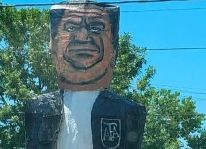 El muñeco fue armado por un grupo de amigos del barrio de Villa Progreso, en Berisso. Y enseguida fue una imagen que se viralizó, ya que en definitiva, Tapia estuvo en el centro de escena de la ciudad todo este tiempo con su enfrentamiento con el Pincha y ahora por la investigación de la Justicia, con diversos allanamientos.