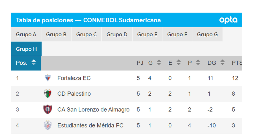 Grupo H – San Lorenzo: El cuervo solo puede puede aspirar a quedar segundo y jugar los 16avos. El Ciclón está tercero con cinco unidades a tres puntos de Palestino, que se ubica en la segunda posición.