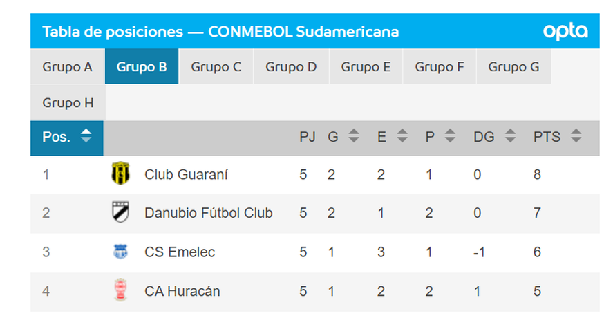 Grupo B- Huracán: El Globo viene en caída libre no sólo en la Liga sino también en la Copa donde no gana desde la primera fecha sin embargo, la paridad del grupo lo mantiene con chances y pese a estar último con un partido por jugar puede quedar primero. ¿El dato? está último con 5 puntos pero es el único con diferencia de gol positiva (+ 1 contra -1 de Emelec que suma 6 unidadeds y 0 de Danubio que tiene 7 y Guaraní, líder con 8)