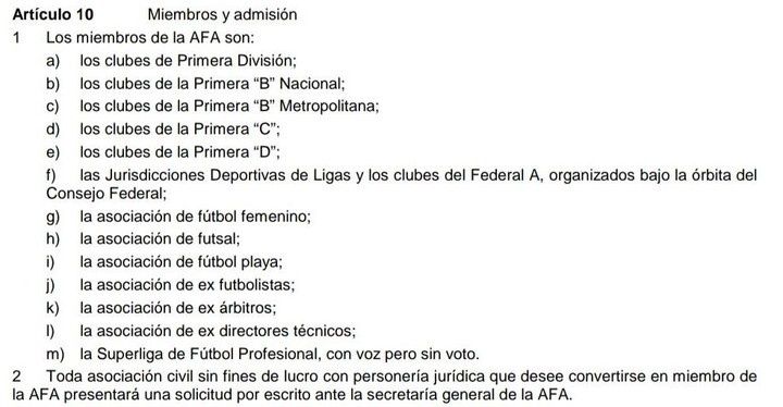Dice el Estatuto, en su artículo 10, titulado “Miembros y admisión”, que detalla quiénes son los miembros de la AFA, y que en su inciso 2, aclara:”Toda asociación civil sin fines de lucro con personería jurídica que desee convertirse en miembro de la AFA presentará una solicitud por escrito ante la secretaría general de la AFA“. Haber hablado para toda Sudamerica sobre los “beneficios” de las Sociedades anónimas no parece otra cosa que blanqueamiento de un arribo inminente.