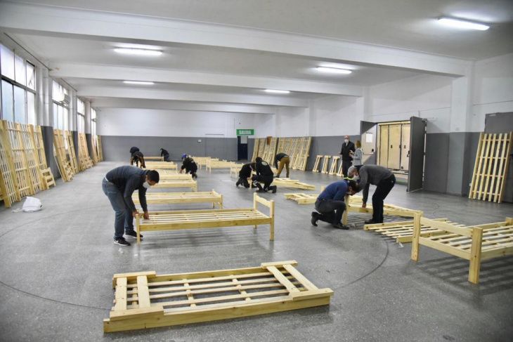 Cabe destacar que a pesar de estar a disposición tanto el Polideportivo como la Casa de Lobos, inicialmente se comenzó a trabajar con 45 camas que llegaron esta mañana y se ubicaron en el Salón Héroes de Malvinas.