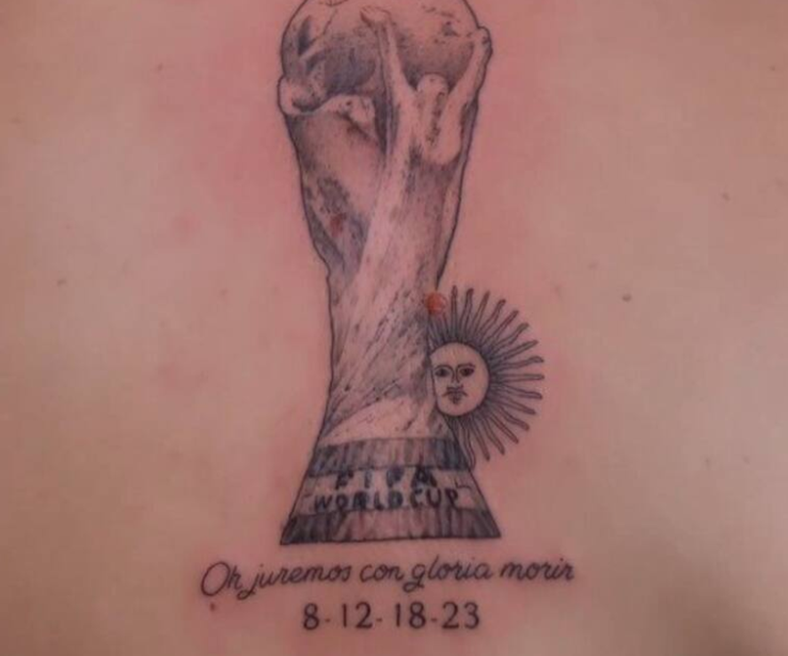 Sin embargo el central también cobró notoriedad en lo extra futbolístico cuando se tatuó un pequeño fragmento del Himno Nacional argentino con un particular detalle gramatical de una de las estrofas que no pasó desapercibido.
