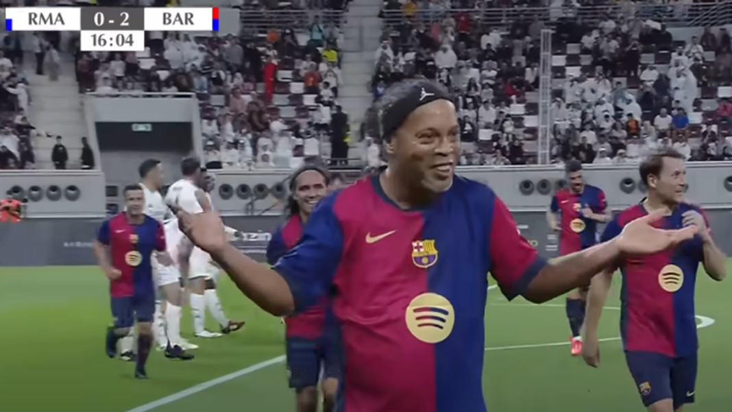 Lo que comenzó siendo un duelo en tierras árabes de estrellas históricas de Barcelona y Real Madrid terminó siendo un festival de fútbol total de Ronaldinho que terminó llevandosé todas las miradas y los elogios de un partido que tuvo a un argentino destacado, uno que supo tener un duro roce con Verón.