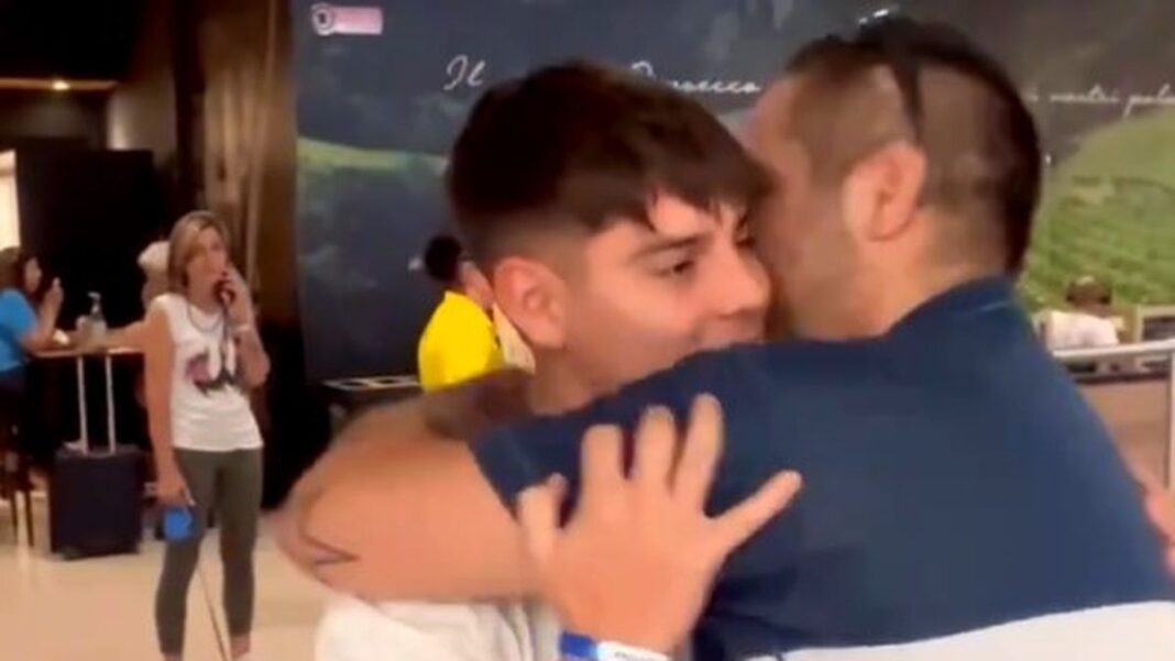 El recibimiento de un hincha de Gimnasia para Benjamín Domínguez en Italia.