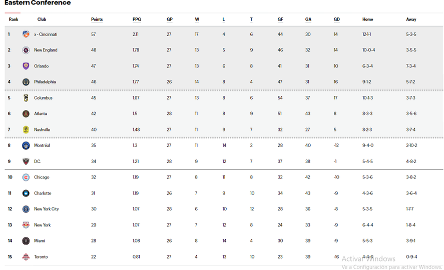 Para comprender la complejidad que se le viene a Inter y a Messi solo basta con ver la tabla. En ella se puede ver que los siete mejores de cada conferencia acceden a los playoffs (Inter esta en la Este). El primero de cada conferencia se mete en las semifinales de conferencia y los seis siguientes a la primera ronda. En la primera ronda, el ubicado en 2° lugar enfrenta al 7º, el 3º al 6º, y el 4º al 5º.