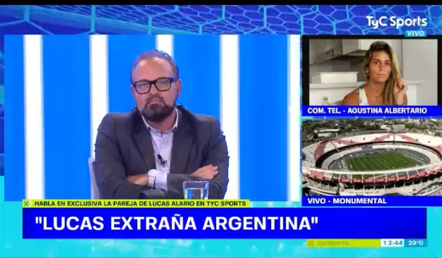 TyC Sports promocionó el reportaje de esta manera: “Agustina Albertario, jugadora de la #SelecciónArgentina de hockey y pareja de Lucas Alario, habló en exclusiva con TyC Sports sobre un posible regreso del 9 a #River: “Lucas extraña Argentina”.