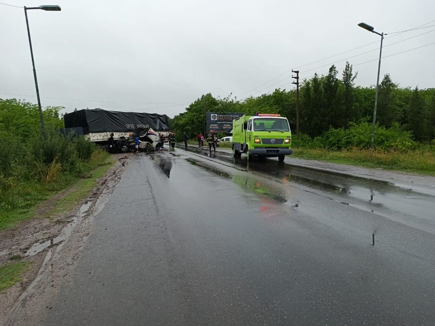 Todo sucedió en la ruta 36 y la calle 475 en medio de la caída de una intensa lluvia cuando por motivos que se investigan una camioneta Renault Kangoo blanca colisionó con un camión Ford Cargo.