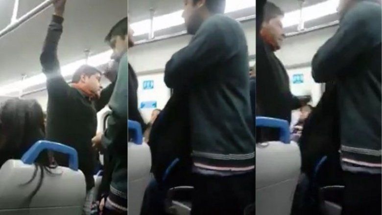 En las imágenes tomadas el fin de semana puede verse cómo el agresor es detenido por la Policía gracias a la intervención de un pasajero que le impide el paso.
