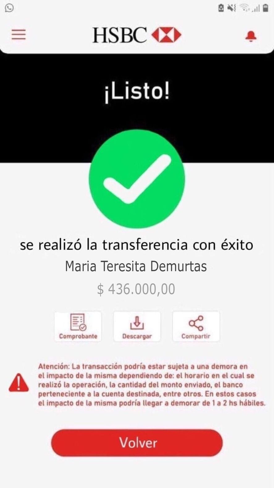 Así fue que el comprador afirmó que ya había enviado el dinero y hasta le envió la copia de la presunta transferencia desde una cuenta del Banco HSBC.