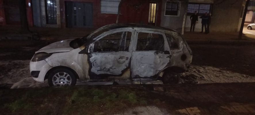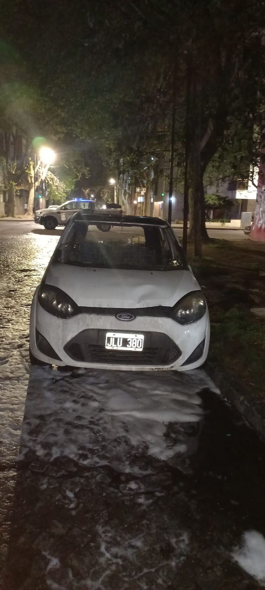 Bomberos del cuartel central de La Plata arribaron al lugar y sofocaron las llamas del auto marca Ford Fiesta blanco, quien sufrió daños importantes.