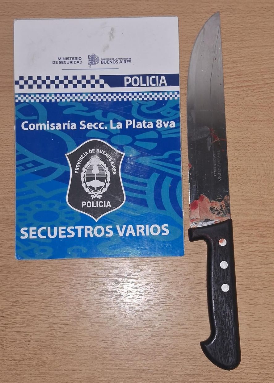 La cuchilla con manchas de sangre fue incautada y puesta a disposición de la justicia.