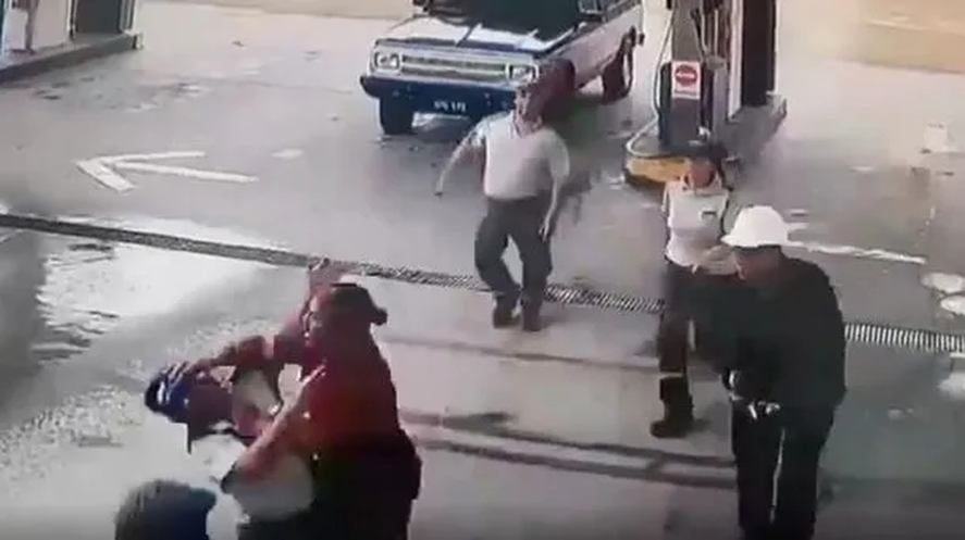 La situación quedó registrada por las cámaras de seguridad del comercio donde se permite ver cómo el hombre atacó a golpes al playero por lo que varias personas debieron interceder.