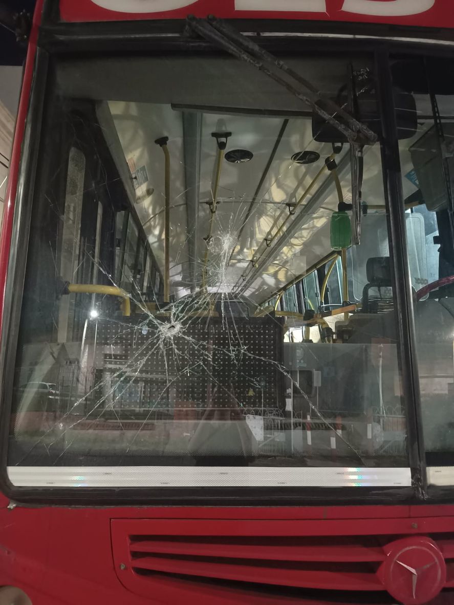 El micro, en el que no había pasajeros, resultó con el parabrisas roto y con ventanillas con los vidrios estallados.