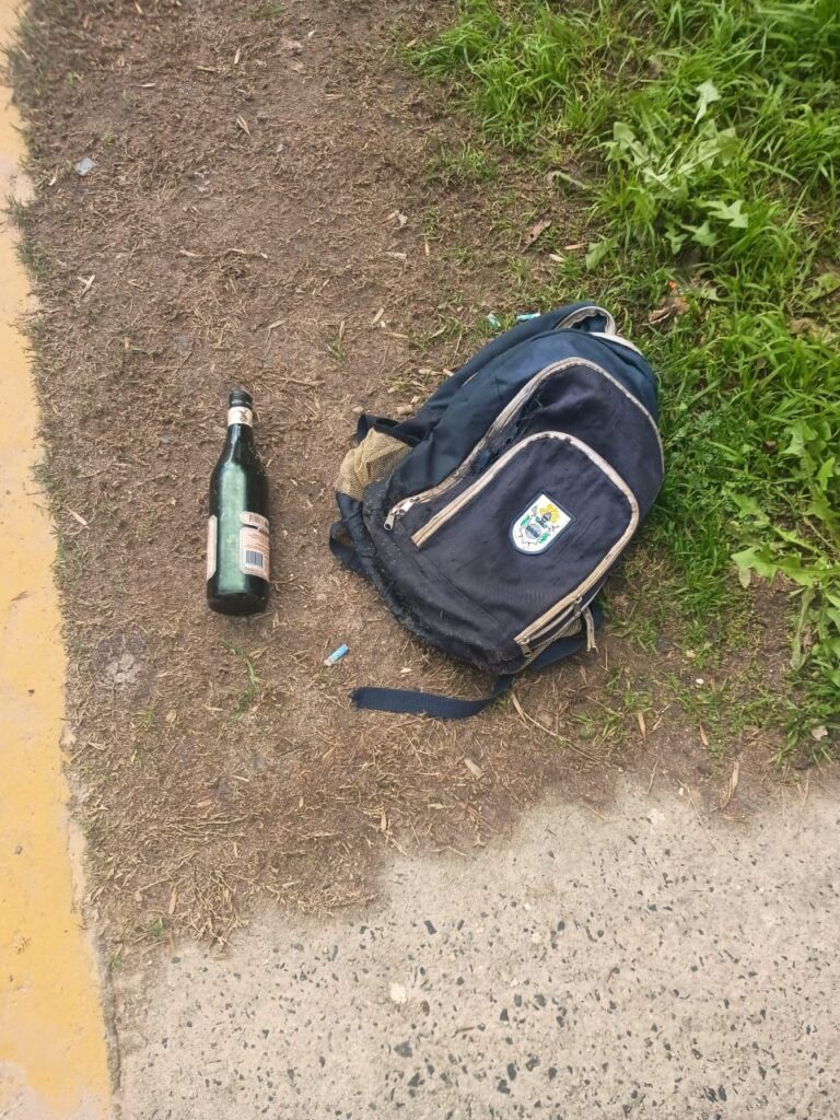 Policías del Comando de Patrullas llegaron enseguida y hallaron al sospechoso a metros del comercio y en la mochilla llevaba las dos botellas.