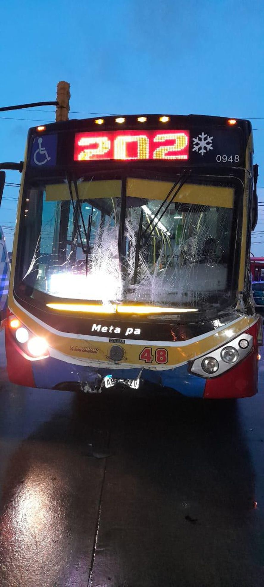 En el accidente participaron un colectivo de la Línea 202, un camión con un container y un auto marca Renault, y además de los daños en los tres vehículo, una columna de alumbrado público fue derribada.