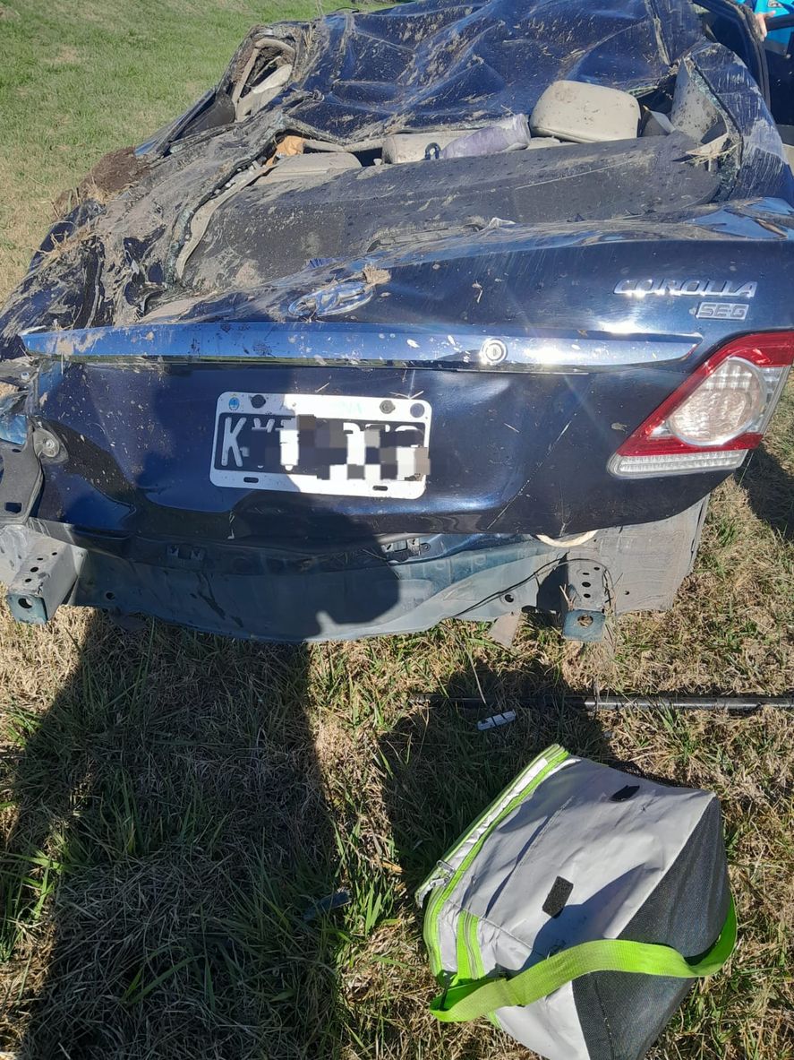 El incidente vial se produjo este jueves cuando por razones que se investigan el conductor de un auto marca Toyota Corolla azul perdió el control, despistó y volcó en el kilómetro 168 de la Autovía 2.