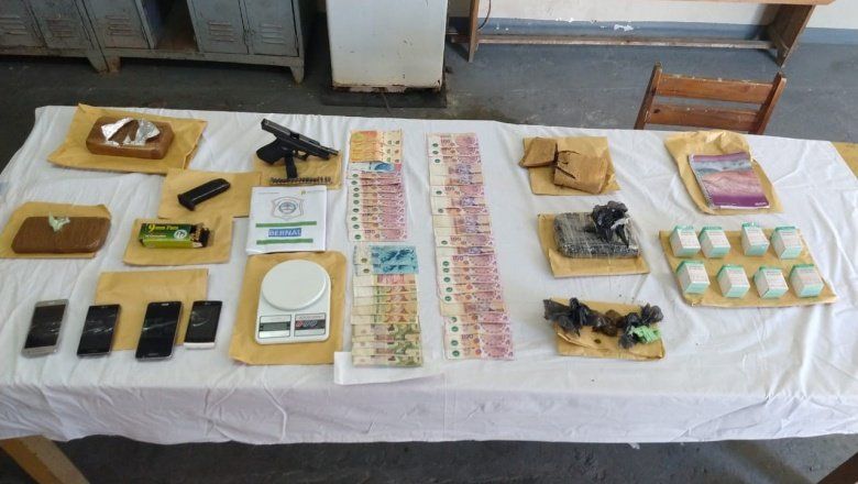 En los allanamientos realizados en 833 entre 889 y 890, en 859 al 1700, ambos de San Francisco Solano, y en 414 y 637 de Berazategui, se secuestró gran cantidad de estupefacientes: tres ladrillos de cocaína y un ladrillo de marihuana, elementos de fraccionamiento, recortes de nylon, balanzas de precisión y 2,5 kilogramos de bicarbonato de sodio con el cual realizaban el corte de la droga.