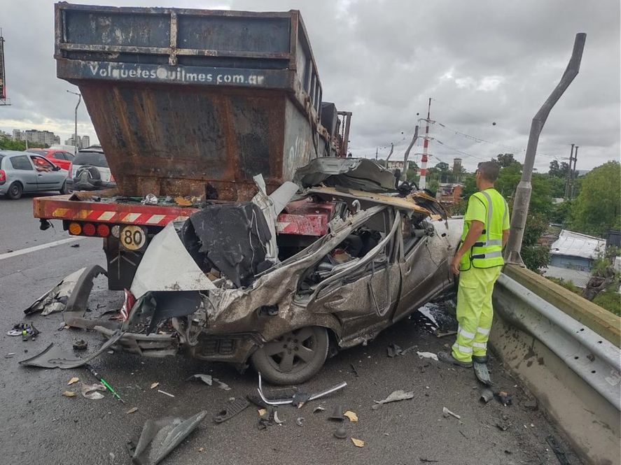 El trágico accidente se produjo en la banquina externa a la altura del kilómetro 20 cuando un vehículo Volkswagen Bora embistió por alcance a un camión marca Iveco modelo 170E22T, el que trasladaba volquetes.