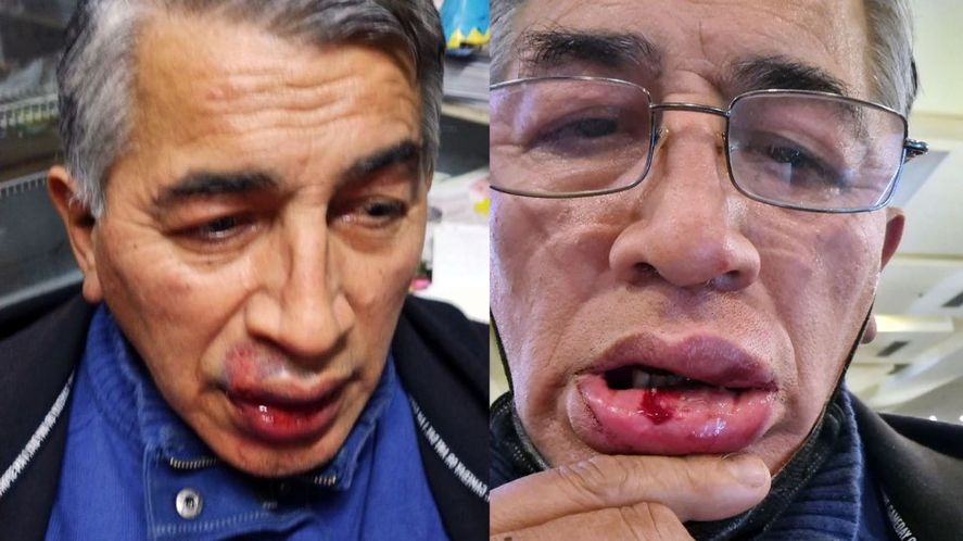 Pedro Schaab debió ser asistido por personal de salud contratado por el propio centro comercial, y presentaba heridas en sus labios.