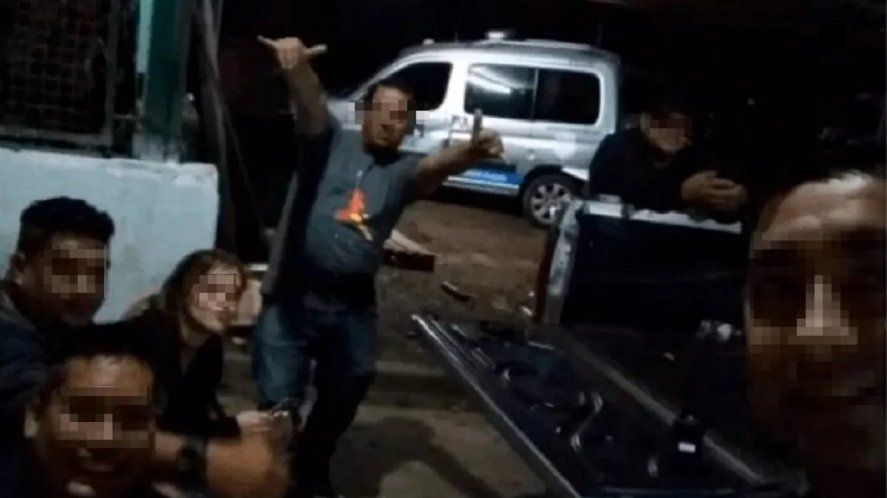 En las imágenes viralizadas en las redes sociales se observan a los efectivos vestidos con su uniforme tomando bebidas alcohólicas y escuchando música a alto volumen junto a un patrullero.