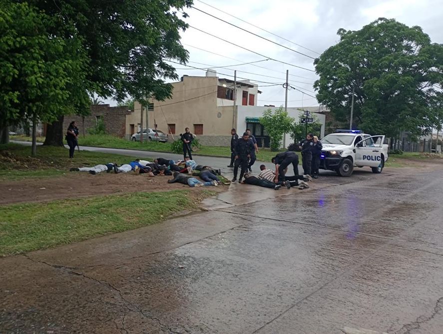 Mientras el pibe peleaba por su vida, en el lugar del hecho hubo una bataola y con la intervención de policías fue aprehendidos 13 personas e identificadas otras 14.