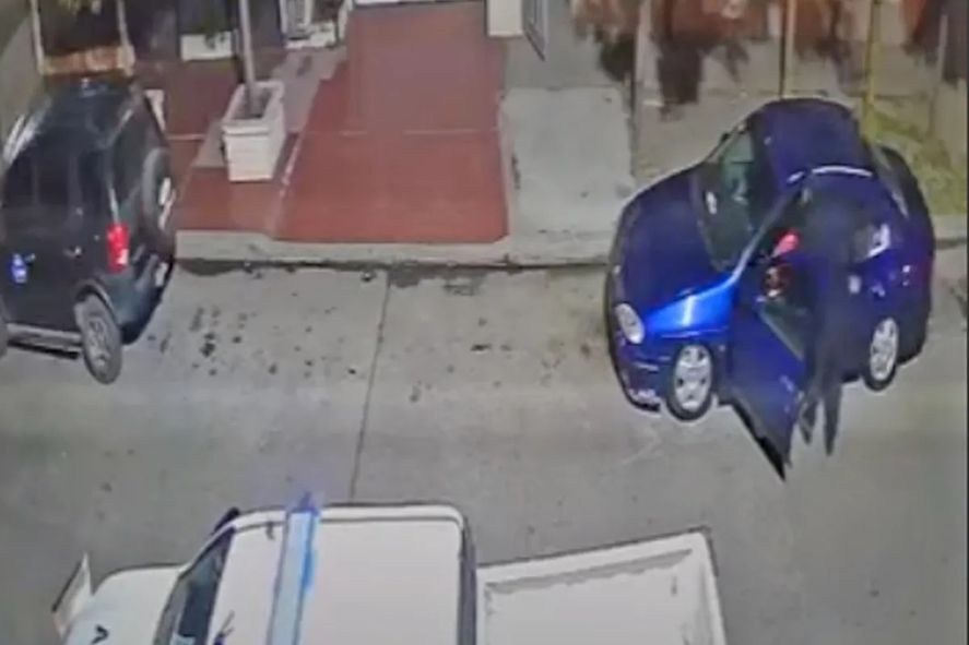 De acuerdo a lo que se ve en la filmación de una cámara de seguridad el uniformado se acercó al rodado y al ver que el hombre se encontraba profundamente dormido sacó algo del vehículo.