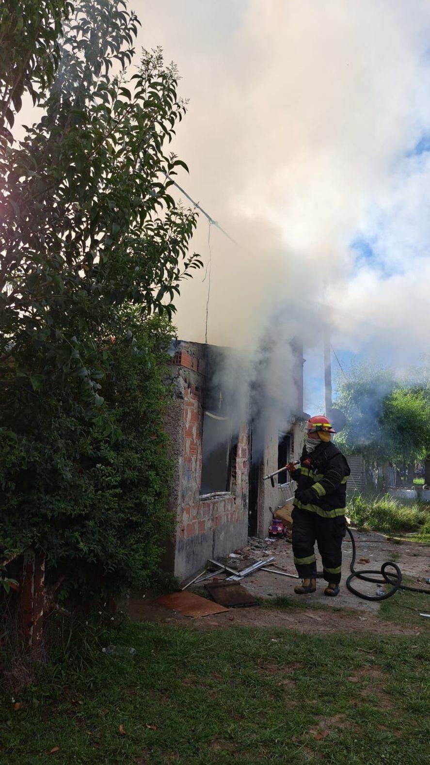 En tanto, minutos después, los bomberos de Punta Lara tomaron conocimiento del incendio de la vivienda de los Domínguez, que provocó pérdidas totales materiales.