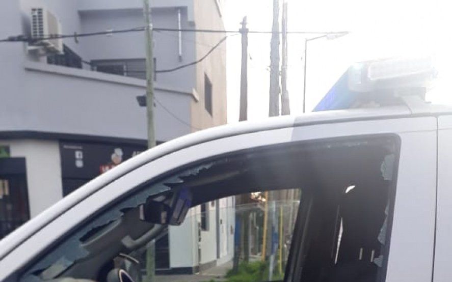 La ventanilla de uno de los móviles estalló y una mujer policía, identificada como Brenda Martín, resultó con cortes.