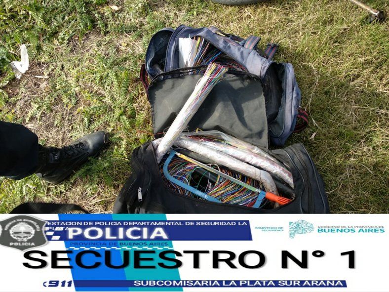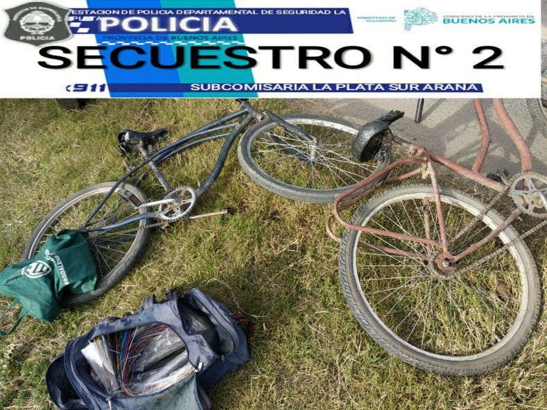 Los ladrones fueron aprehendidos en 137 y 610, en la localidad de Arana y en su poder las autoridades secuestraron dos bolsos con cables del tendido de red telefónica de un milímetro de espesor, una sierra de mano y dos bicicletas, las que usaban para trasladarse.