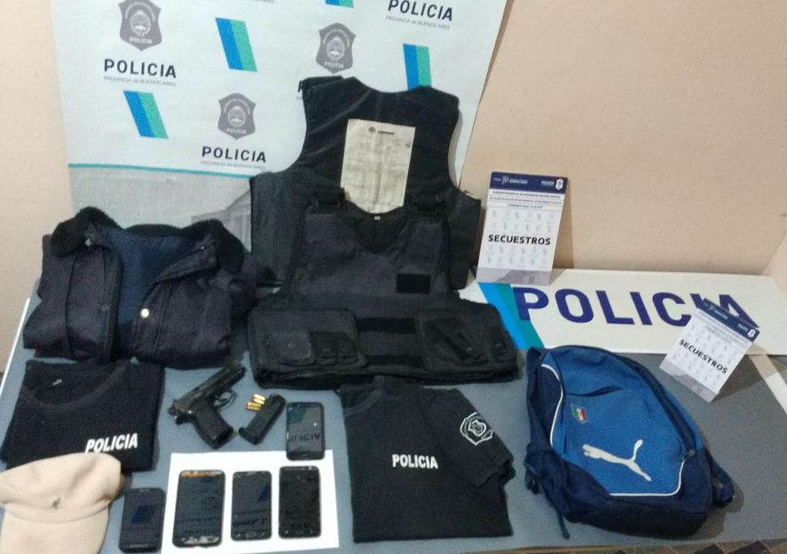 El operativo fue en un domicilio ubicado en calle 441 entre 28 y 29, en City Bell, por personal de la comisaría Décima, quien incautó un arma de fuego calibre 22 marca Bersa con municiones, un chaleco antibalas color azul similar al de las fuerzas de seguridad, dos remeras negras con la inscripción de “Policía”, una campera azul y demás elementos de interés para la causa.