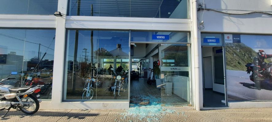 Claudio, el dueño de la concesionaria, habló con INFOCIELO y explicó que “ni bien rompieron el blíndex se accionó la alarma. Igual se fueron rápido con dos motos Susuki AX 100 cc.”.