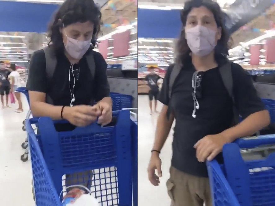 La platense acompañó el posteo con varios videos, en los que el acusado reconoce lo que hizo y pide disculpas en voz baja, visiblemente nervioso por la situación, rodeado de varios agentes de seguridad de la conocida cadena de supermercados, mientras hace la fila para pagar en la caja.
