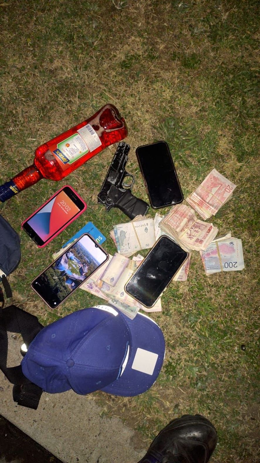 En poder de los dos adolescentes los policías hallaron los celulares robados, el dinero, un arma de fuego de utilería y unas bebidas alcohólicas.