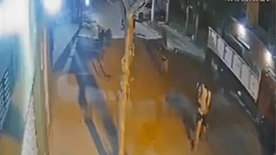 De pronto aparecieron cuatro ladrones en dos motos y lo acorralaron, en un hecho captado por una cámara de seguridad.