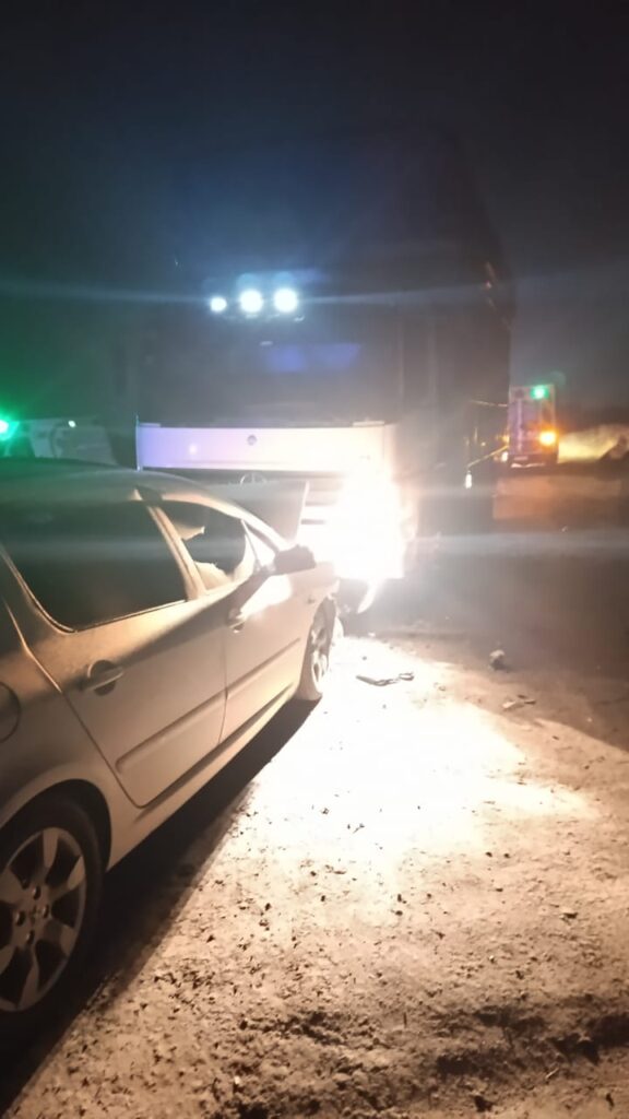 El incidente vial se produjo este jueves a la noche cuando por razones que se investigan un auto Peugeot 307 colisión de frente a un camión Mercedes Benz modelo Atego 1725, el que al parecer se encontraba parado.