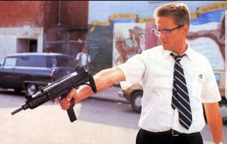 Algunos testigos del tenso y peligroso momento refirieron que el hombre mayor les hizo recordar al actor Michael Douglas en la famosa película de Hollywood “Un día de furia”.